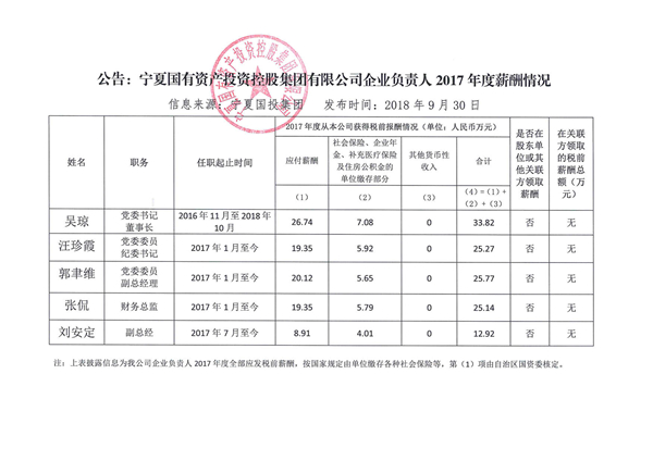 A8体育直播企业负责人2017年度薪酬情况