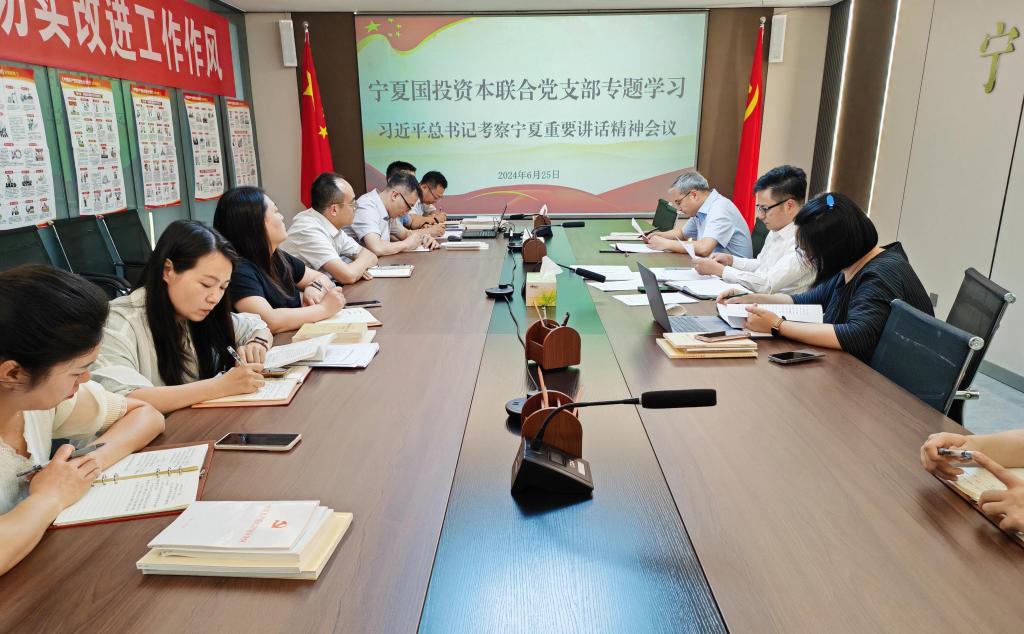 6月25日,宁夏国投资本运营有限公司联合党支部传达学习习近平总书记考察宁夏重要讲话精神,认真落实全区领导干部大会精神,落实集团公司领导干部会议要求,并安排部署公司学习宣传贯彻工作。公司党支部负责人、总经理冉建强主持会议。