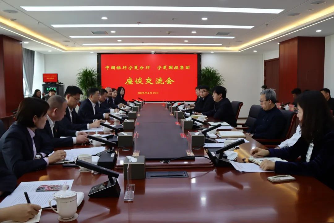 4月15日下午,中国银行宁夏分行党委书记、行长肖达一行到访宁夏国投集团,双方重点围绕加强业务合作进行了座谈交流。A8体育免费看球党委书记、董事长杨舵,集团党委副书记、总经理张侃出席会议。