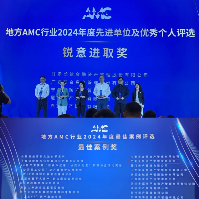5月28日,宁夏金融资产管理公司在第十届地方AMC行业年会上荣获2024年度地方AMC“锐意进取奖”“最佳案例奖”两个集体奖项。该奖项由59家地方AMC机构初评、行业联络员单位和专家委员会审定,旨在表彰过去一年中在不良资产收购处置、化解区域金融风险、促进区域经济高质量发展等方面勇于创新、锐意进取,并取得显著成绩或重要突破的地方资产管理公司。