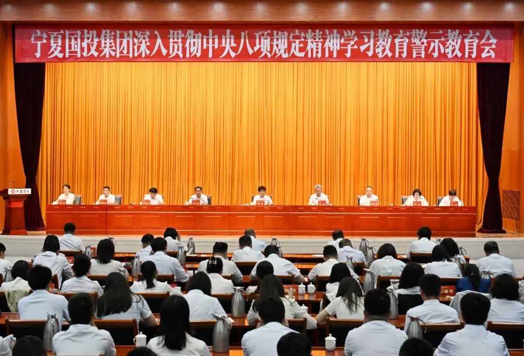 6月12日,宁夏国投集团召开深入贯彻中央八项规定精神学习教育警示教育会,深入学习领会习近平总书记关于加强党的作风建设重要论述和重要指示批示精神,持之以恒深入贯彻中央八项规定及其实施细则精神,推动学习教育走深走实。集团公司党委书记、董事长杨舵主持会议并讲话,自治区党委第四督导组成员潘彦华到会指导。