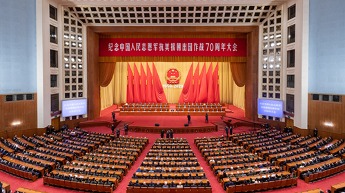 今天,我们在这里隆重集会,纪念中国人民志愿军抗美援朝出国作战70周年。