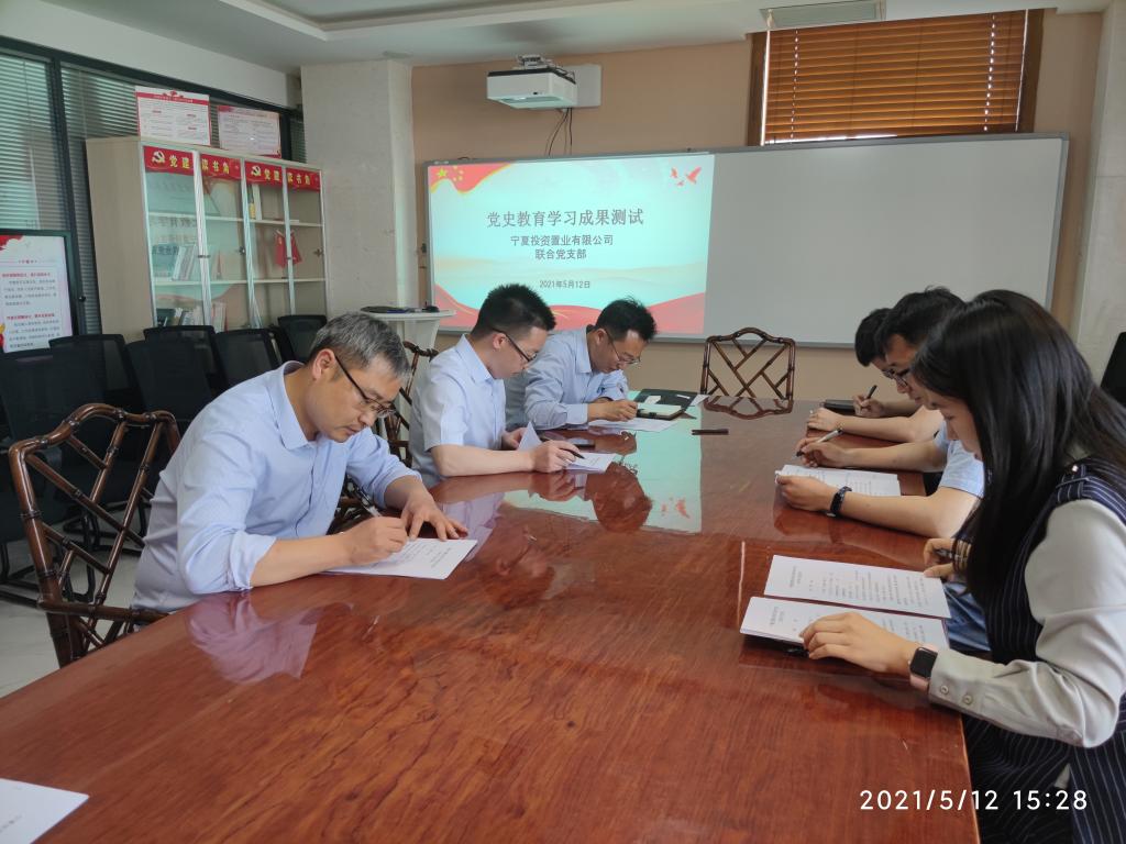 为扎实推进党史学习教育走深走实,巩固近期党史学习教育理论学习成果。5月12日宁夏投资置业联合党支部组织开展党史学习教育知识测试。通过此次测试,既提高了全体党员自觉性,也带动了全体党员推进党史学习教育向纵深发展,真正实现以考促学、以学促用的目的。