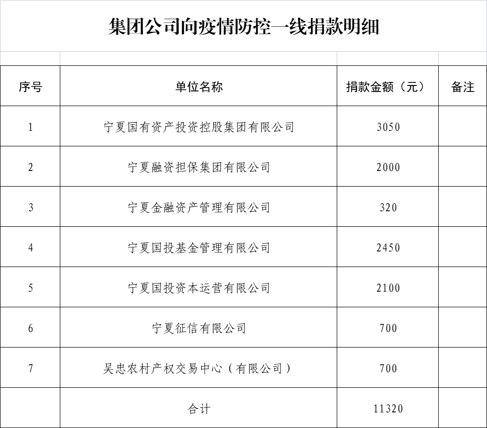 “9·20”疫情发生以来,集团公司迅速行动,组织党员、团员和青年职工充实到党员先锋队、疫情防控志愿者服务队中来,积极开展疫情防控志愿服务,体现了宁夏国投人的勇气与担当。为进一步助力疫情防控,集团公司及各子公司人员纷纷伸出援手,汇聚爱心、凝聚力量,短时间内筹集捐款11320元并向宁夏青少年发展基金会进行捐赠,用于一线疫情防控。下一步,A8体育免费看球将继续落实疫情防控有关要求,践行国企使命担当,为疫情防控贡献国企力量。