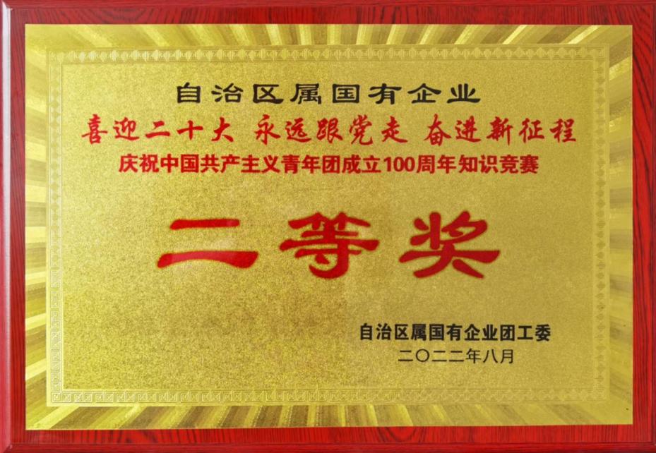 8月5日,自治区属国有企业团工委“喜迎二十大、永远跟党走、奋进新征程”庆祝中国共产主义青年团成立100周年知识竞赛成功举办,集团公司代表队荣获比赛二等奖。