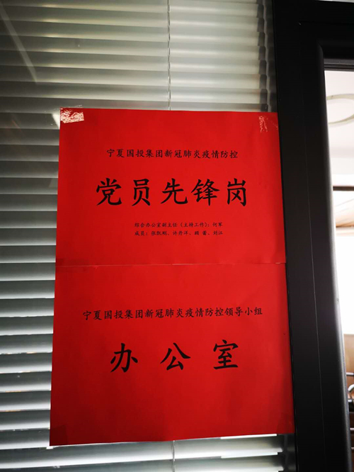 宁夏担保集团党委将综合办公室设立为“疫情防控党员先锋岗”,带头坚决服从组织安排,不折不扣落实各项措施,及时制定复工方案,全力筹措疫情防控物资,做好复工后办公区域消毒工作、食堂安全相关工作,切实发挥党员先锋作用,全力以赴打好疫情防控阻击战。