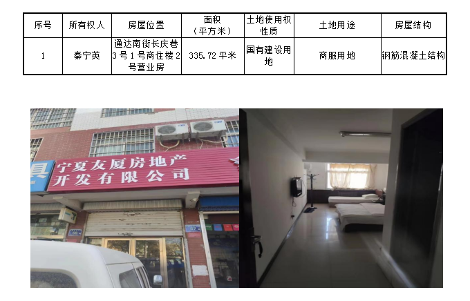 该户债权项下抵押物位于通达南街长庆巷3号1号商住楼2号营业房,所在层数为-1至2层,总高8层,建筑面积335.72平米,2006年12月竣工。可作为办公、旅馆或者培训教育。