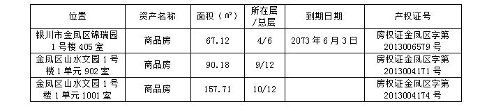 企业法定代表人:刘文全,注册资本8380万元人民币,实缴资本8330万元人民币,经营状态为吊销、未注销。该笔债权最高额抵押94万元,其中:锦瑞园1号楼405室20万元;金凤区山水文园1号楼1单元902室27万元、1号楼1单元1001室47万元。