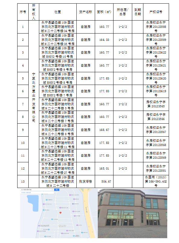 该户债权项下抵押物位于北方国际建材物流城,周边商业环境较好,资产流动性尚可,可用作建材销售门面、仓储等。