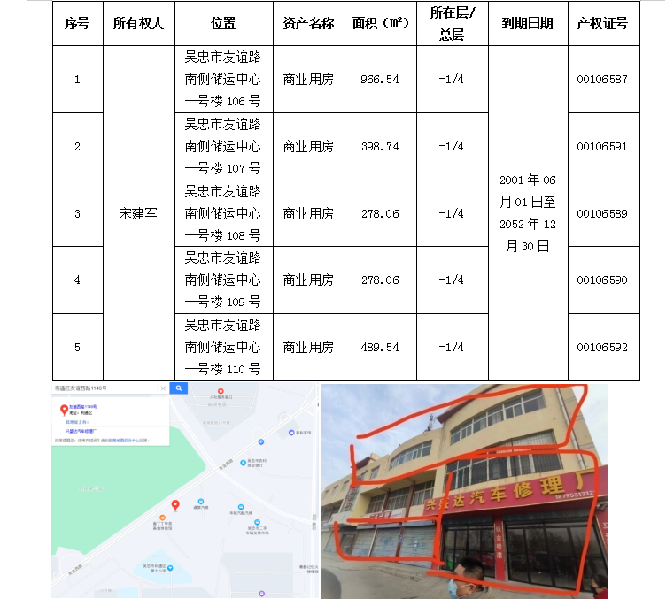 该户债权抵押物位于吴忠市友谊路中正储运中心,交通便利,西边紧邻乃光胡公园,风景宜人,南边紧邻吴忠市利通区第十小学,商业氛围浓厚,生活配套设施完善。该抵押物周边商铺多经营超市、汽车美容等,运营和增值能力较强,具有较强现金回收水平,同时便于去化。该债权已诉讼执行,无司法障碍。