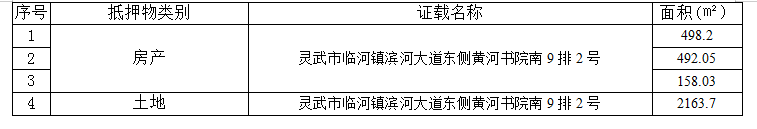 抵押物为灵武市临河镇滨河大道东侧黄河书院的房屋,面积共计1148.28㎡,以及对应的面积为2163.7㎡的土地,具体如下: