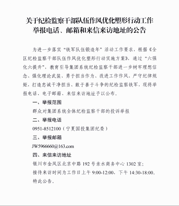 关于纪检监察干部队伍作风优化塑形行动工作举报电话、邮箱和来信来访地址的公告