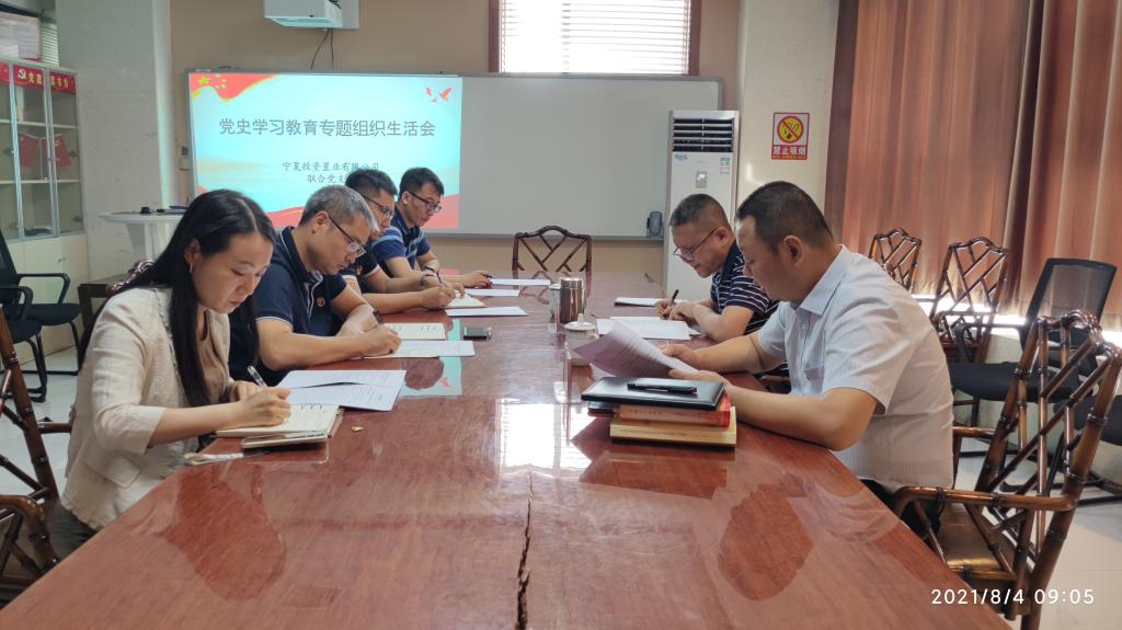 为深入推进党史学习教育成果,8月4日,宁夏投资置业联合党支部召开党史学习教育专题组织生活会,会议由联合党支部书记谈文庆主持,集团党委副书记、总经理王勇以普通党员身份参加会议,支部全体党员参加本次会议。