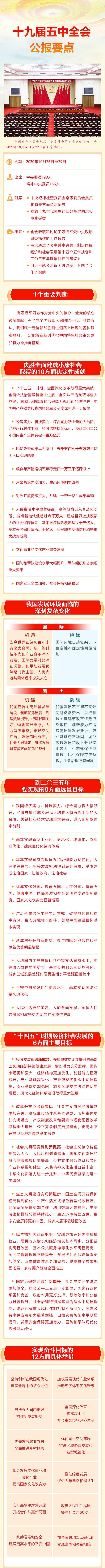 中国共产党第十九届中央委员会第五次全体会议公报