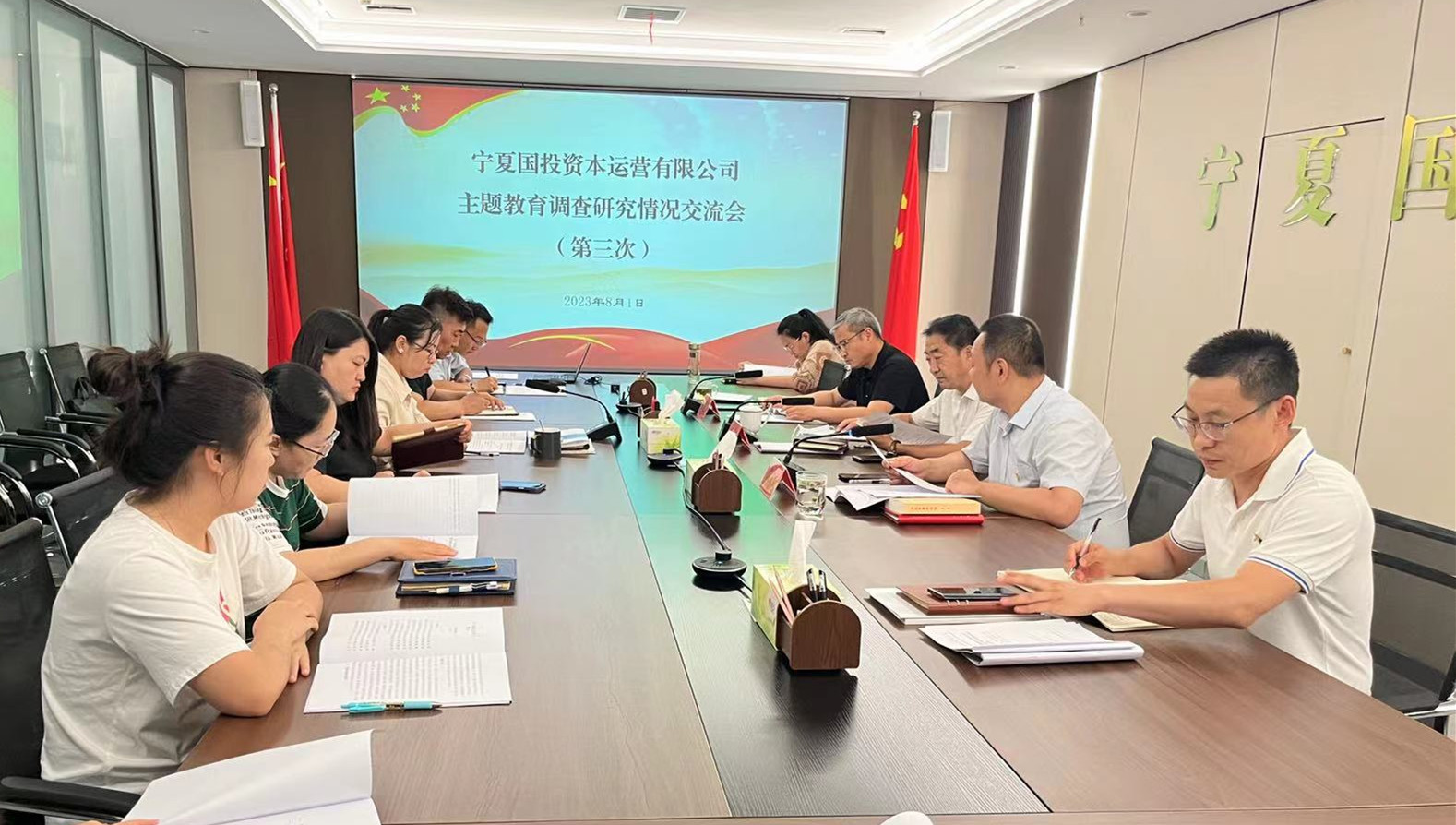 8月1日,宁夏国投资本联合党支部召开学习贯彻习近平新时代中国特色社会主义思想主题教育调研成果交流会,集团公司党委副书记、工会主席郭聿维同志到会指导并讲话,党支部书记、公司董事长兼总经理谈文庆主持会议。