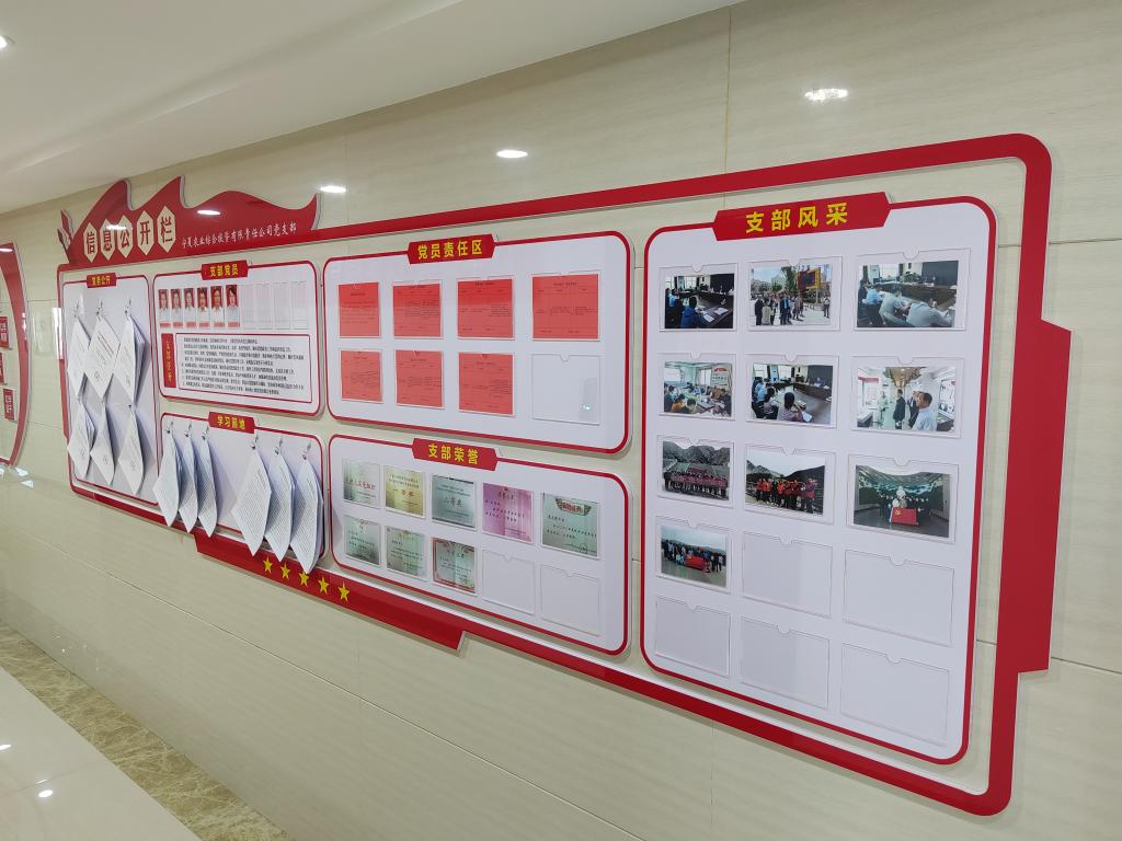 党建文化墙围绕主题教育、党风廉政建设、党务信息公开等内容,积极宣传主题教育重要意义、根本任务和总要求等内容,以及习近平总书记关于国企改革的重要论述,建立党务信息公开栏,展示支部和党员风采,建立党员责任区,进一步将党建与业务融合。以图文并茂的方式,将主题教育和党建工作融入公司全体党员员工的日常工作中,全体为党员营造了“处处是课堂,时时受教育”的浓厚党建氛围,增强了党建工作的直观性、教育性和指导性。