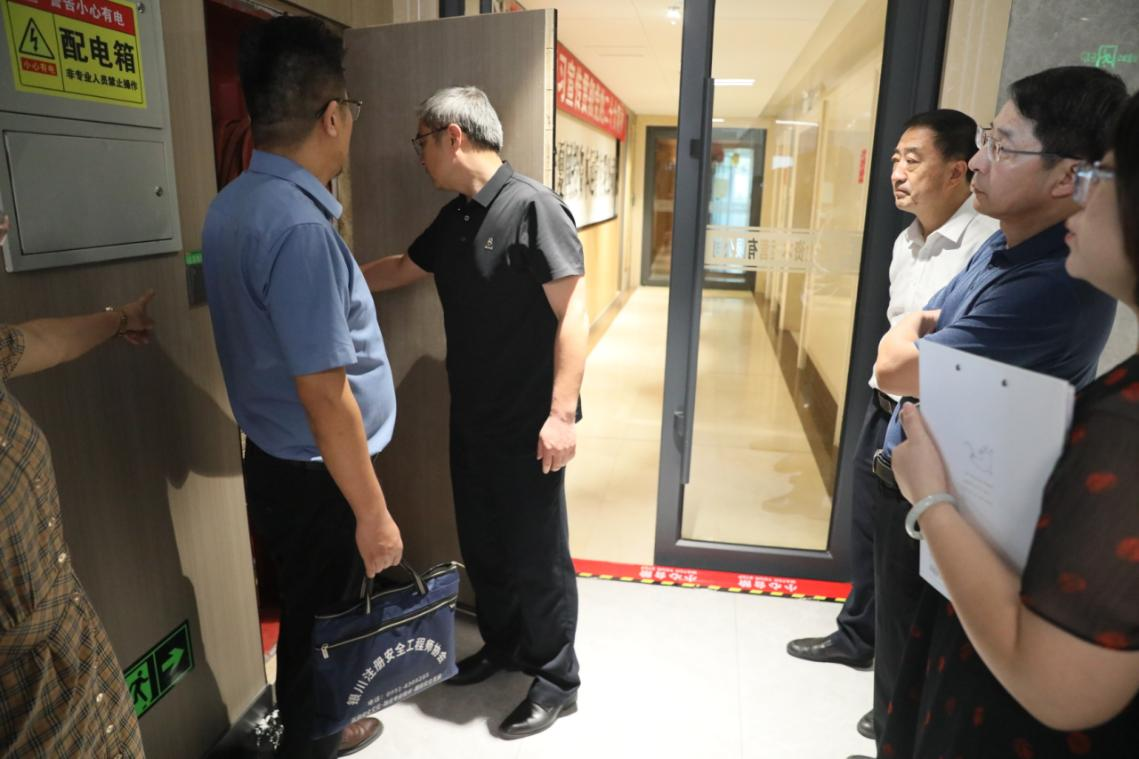 检查组一行现场询问了公司对自治区党委十三届四次全会精神学习贯彻及安全生产工作落实情况,并对办公场所,配电室、档案室、库房等重点区域的消防器材配备、用电设备管理、安全疏散通道等进行了系统检查。检查组现场对检查发现的不足提出整改指导意见。