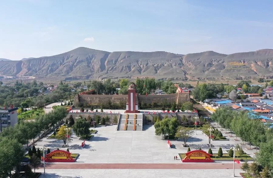 这是位于宁夏固原市西吉县的将台堡红军长征会师纪念园(2021年10月18日摄,无人机照片)。新华社记者 卢鹰 摄