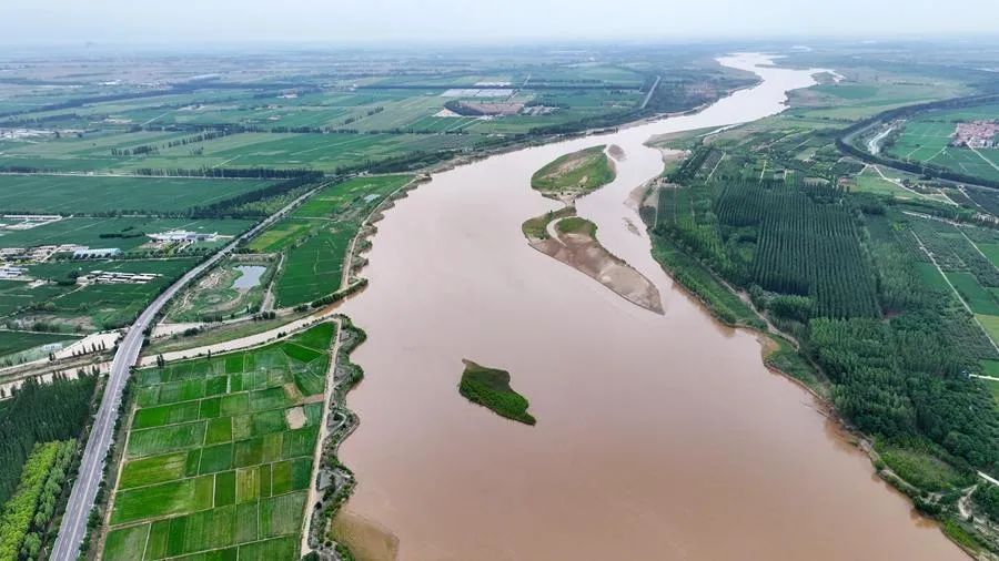 这是2024年6月13日拍摄的黄河宁夏段(无人机照片)。新华社记者 王鹏 摄