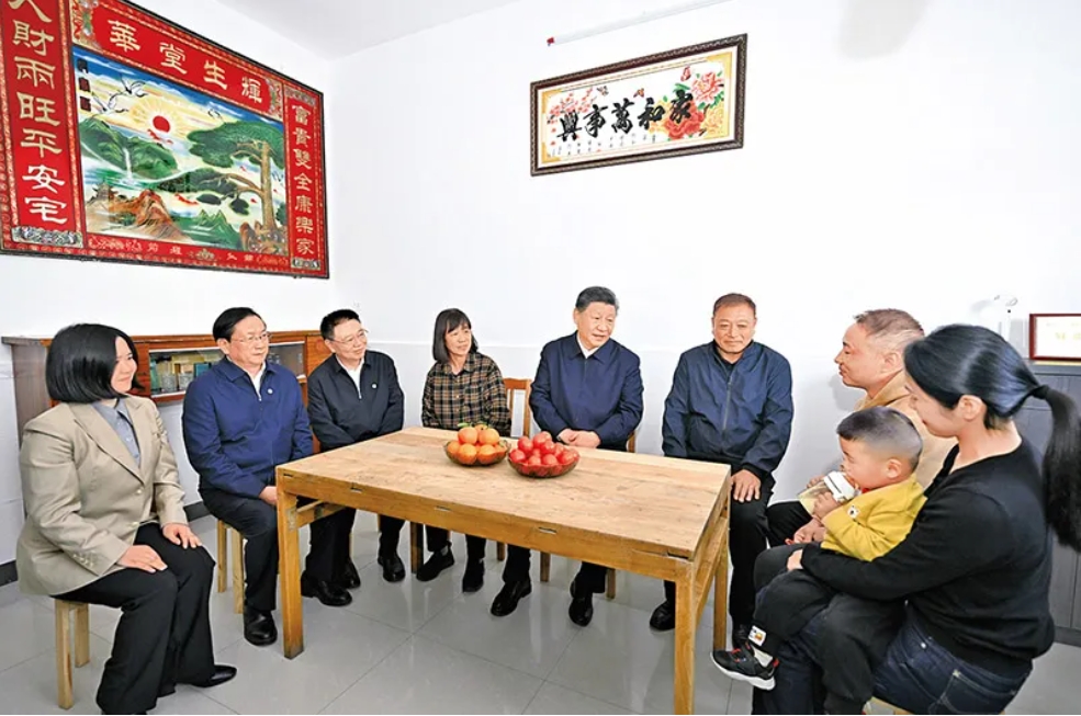 2024年11月4日至6日,中共中央总书记、国家主席、中央军委主席习近平在湖北考察。这是5日上午,习近平在咸宁市嘉鱼县潘家湾镇四邑村村民熊成龙家,同一家人围坐在一起拉家常。新华社记者 燕雁/摄