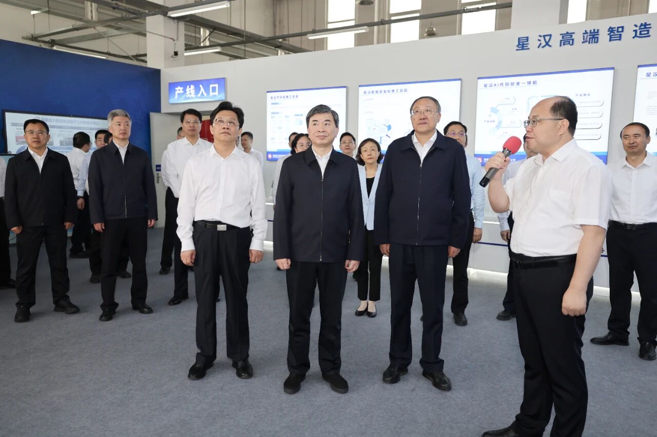 福建省党政代表团在闽宁镇闽宁产业园星汉智能科技公司考察。