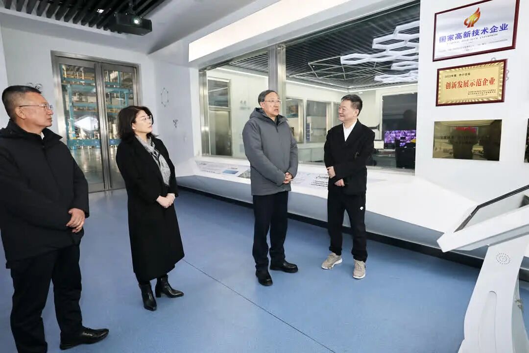 李邑飞在汉尧富锂科技公司,调研企业科技研发及生产运营情况。