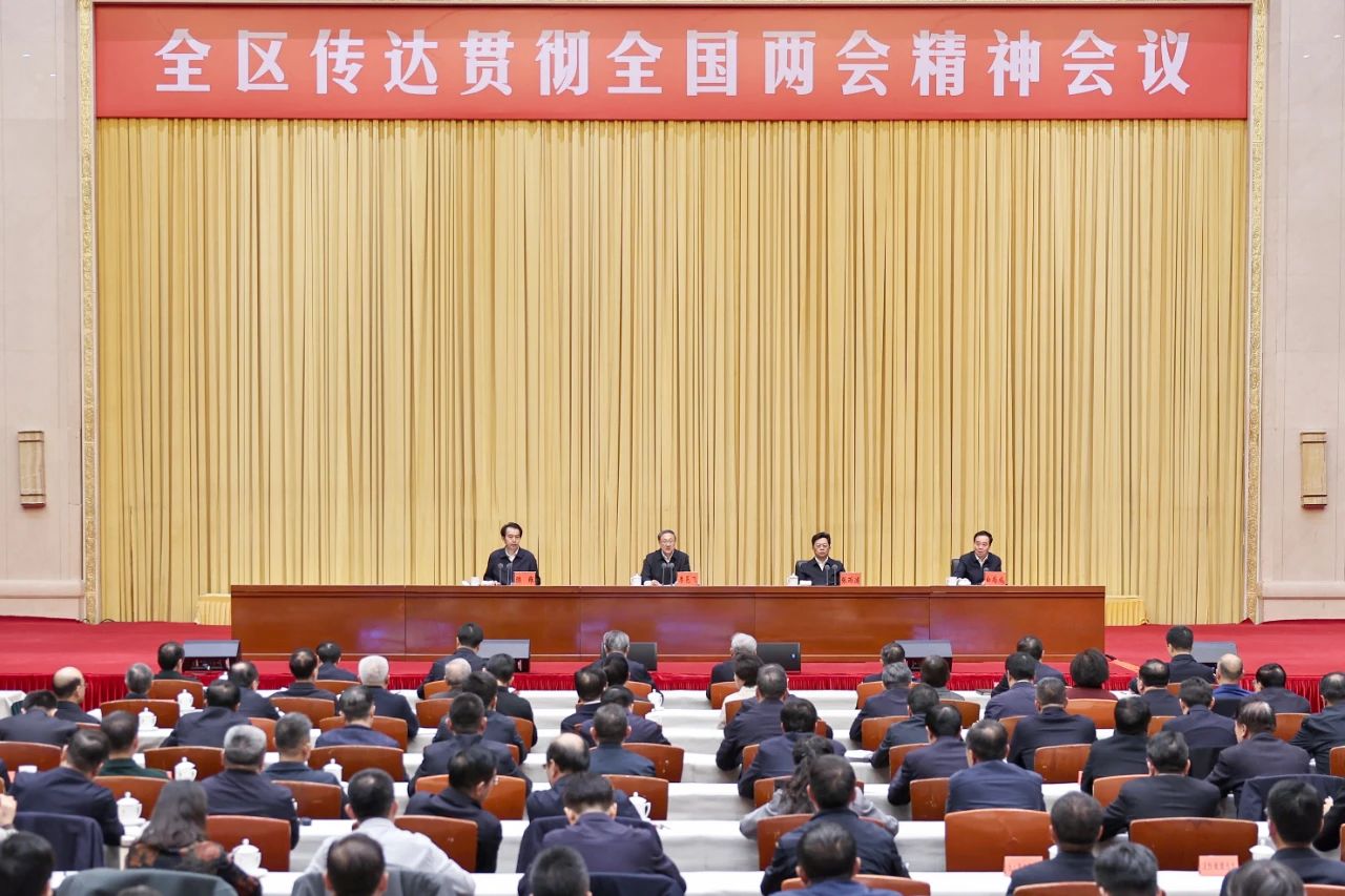 3月13日,全区传达贯彻全国两会精神会议在银川召开。会上,自治区党委副书记、自治区主席张雨浦,自治区政协主席陈雍,自治区人大常委会党组副书记、副主任白尚成分别传达有关精神。省级退休老同志任启兴、项宗西出席。李邑飞指出,在以习近平同志为核心的党中央坚强领导下,这次全国两会取得圆满成功,是一次高举旗帜、凝心聚力、真抓实干、团结奋进的大会。要坚定拥护“两个确立”、坚决做到“两个维护”,一体深学细悟笃行党的二十届三中全会、总书记在全国两会期间和考察宁夏重要讲话、全国两会精神,切实把思想和行动统一到总书记的重要讲话精神上来,统一到全国两会对实践发展成就的客观总结上来,统一到党中央对当前国际国内形势的科学判断上来,统一到全国两会确定的目标任务上来,进一步增强责任感使命感紧迫感,以实干实绩实效推动美丽新宁夏建设取得新成效。李邑飞指出,要全力保持经济稳定运行,聚力开展“稳增长促发展攻坚年”行动,主动对接国家部委争取支持,加力抓项目扩投资,实施提振消费专项行动,确保一季度良好开局、上半年任务过半。要加快构建现代化产业体系,发挥好构建新型能源体系和新型电力系统牵引带动作用,推动现代煤化工、新型材料、清洁能源、数字信息、特色农牧业、文化旅游等产业集约集群发展,抓好“千百十”亿级产业、园区、企业和项目,推进智改数转、绿色转型,因地制宜发展新质生产力,打造全国重要产业基地。要进一步全面深化改革扩大开放,坚持规划引领、加强政策协同、优化营商环境、强化法治保障,先行先试、大胆突破,持续深化重点领域改革,高水平建设内陆开放型经济试验区。要统筹推进教育科技人才一体改革发展,加快教育布局和资源配置优化,推动科技创新和产业创新融合发展,加大人才引育用服力度,不断夯实高质量发展的战略支撑。李邑飞指出,要在统筹推进新型工业化、新型城镇化和乡村全面振兴中促进共同富裕,主动顺应全区人口变化趋势和城乡发展规律,加强普惠性、基础性、兜底性民生建设,加快建设与人口流动趋势相适应的基本公共服务和基础设施,推动城乡一二三产融合发展,做好重点群体就业工作,进一步巩固拓展脱贫攻坚成果,千方百计增加群众收入,不断增强各族群众获得感幸福感安全感。要持续加强生态环境保护,全力打好黄河“几字弯”攻坚战,大力推进生态保护修复,深入推进蓝天碧水净土保卫战,加快绿色低碳转型,坚守“一河三山”改革发展基准线。要加快创建铸牢中华民族共同体意识示范区,推动各民族全方位互嵌融入,依法治理宗教事务,确保民族团结进步、宗教和顺和谐。要深入推进社会主义民主法治建设,大力践行全过程人民民主,全面推进依法治区,巩固和发展政通人和、安定团结好局面。要牢牢守住安全稳定底线,全面贯彻总体国家安全观,维护政治领域安全,防范化解经济金融领域风险,加强重点领域安全风险排查整治,深化“四防”督查,坚决维护人民群众生命财产安全和社会和谐稳定。李邑飞强调,要以党的坚强领导汇聚强大合力,充分发挥党总揽全局、协调各方的领导作用,区市县乡村五级同频共振,弘扬“社会主义是干出来的”的实干精神,引导党员干部在遵规守纪的前提下改革创新、攻坚克难、大胆干事,推动全国两会精神落地见效、转化成实实在在的发展成果。